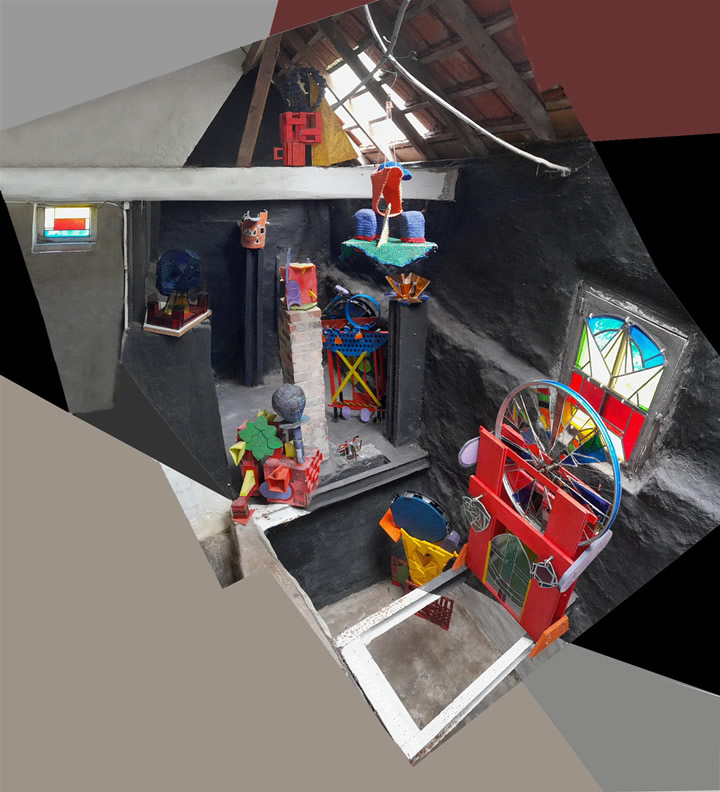 Op kunstvlak kan ik mij ontspannen en uitleven. Mijn atelier in de tuin biedt mij daartoe een ideale omgeving. Wat ik hier ongestoord maak is helemaal van en voor mezelf. Mijn werken zijn niet te koop. Ik kies mijn materialen naar goesting en neem de tijd. Niemand heeft inspraak. "L'art pour l'art" is op mij van toepassing of liever nog: "l'art pour moi". De laatste jaren maak ik voornamelijk plastisch werk. Mijn beelden zijn geen hoogstandjes van ambachtelijkheid. Ik zie het gevecht met de materialen eerder als uitdaging. Wanneer ik na veel strubbelingen een vaag idee, dat ik vaak lang met me ronddraag, in 'levende lijve' voor me zie en ermee tevreden ben, is het af. Dat wil niet zeggen dat het dan niet nog fragiel en wankel kan zijn maar soms is het ook stevig. Sommige werken zijn demontabel en kunnen goed opgeborgen worden. Wij, mijn man en ik, hebben een schuurtje van 1926 dat is ondertussen mijn 'museum' geworden: